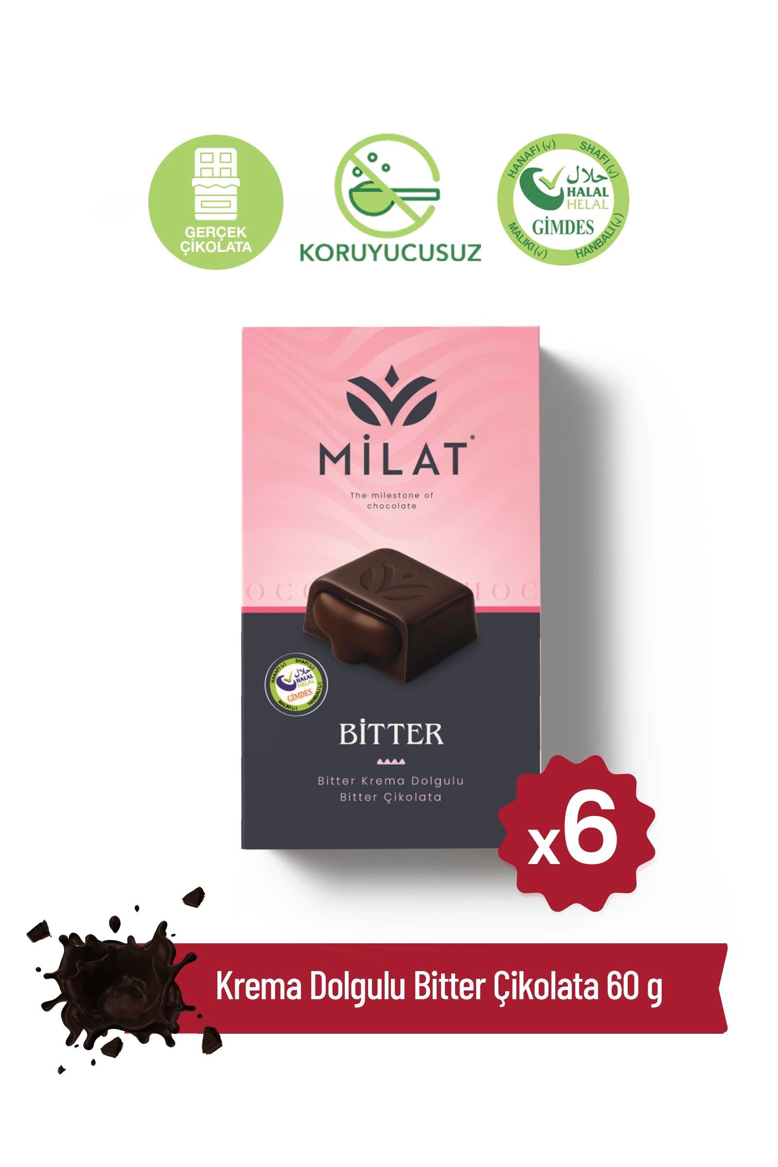 Bitter Krema Dolgulu Bitter Çikolata 60 g x 6 Adet (9765)