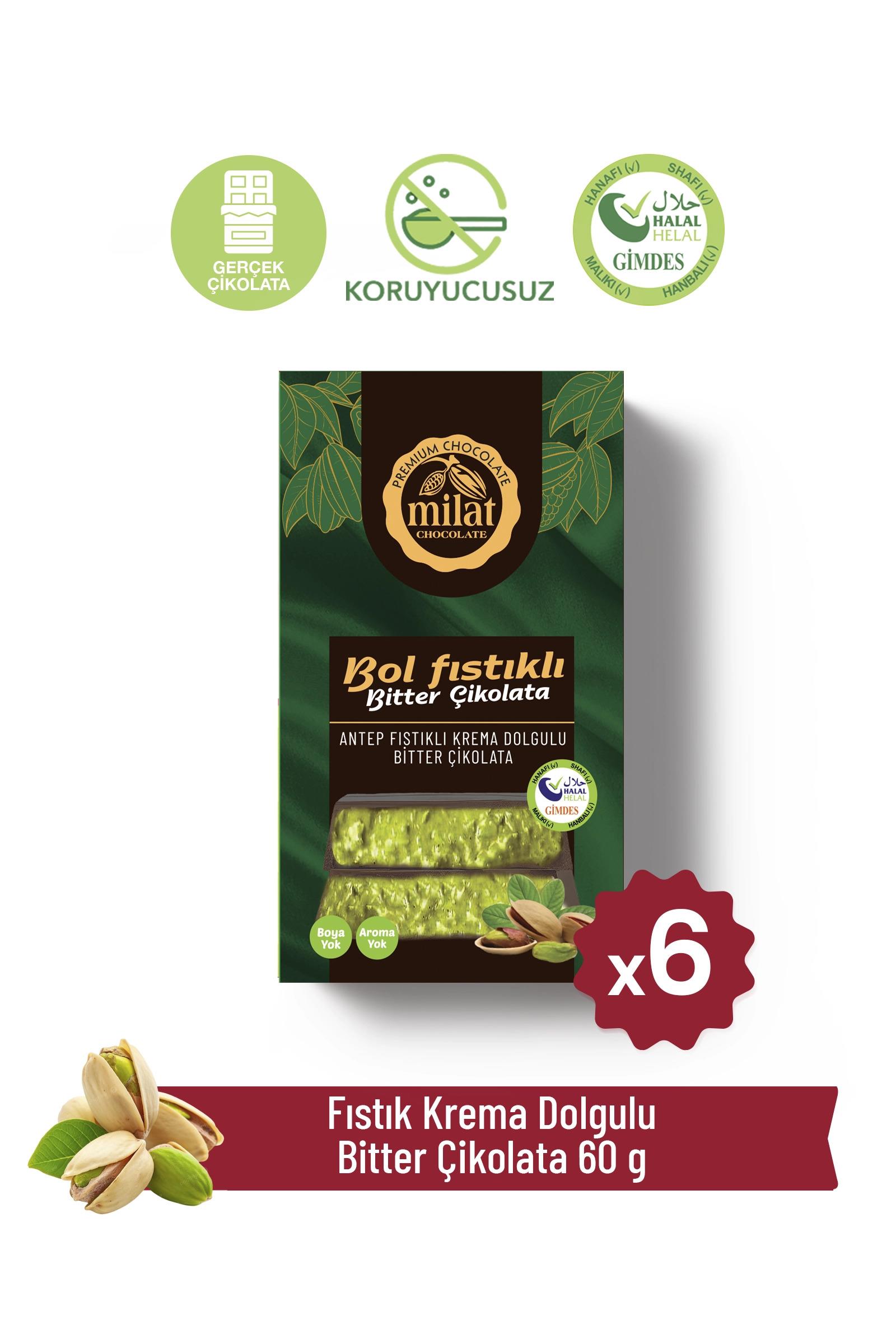 Fıstık Dolgulu Bitter Çikolata 60 g x 6 Adet (5343)