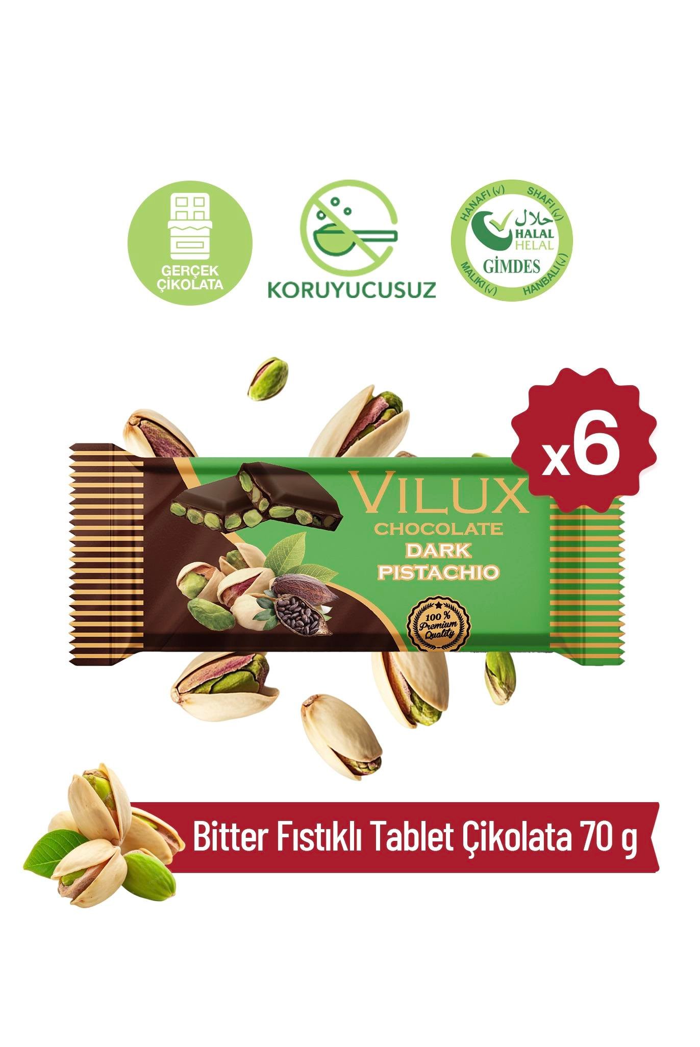 Fıstıklı Bitter Tablet Çikolata 70 g x 6 Adet (43565)