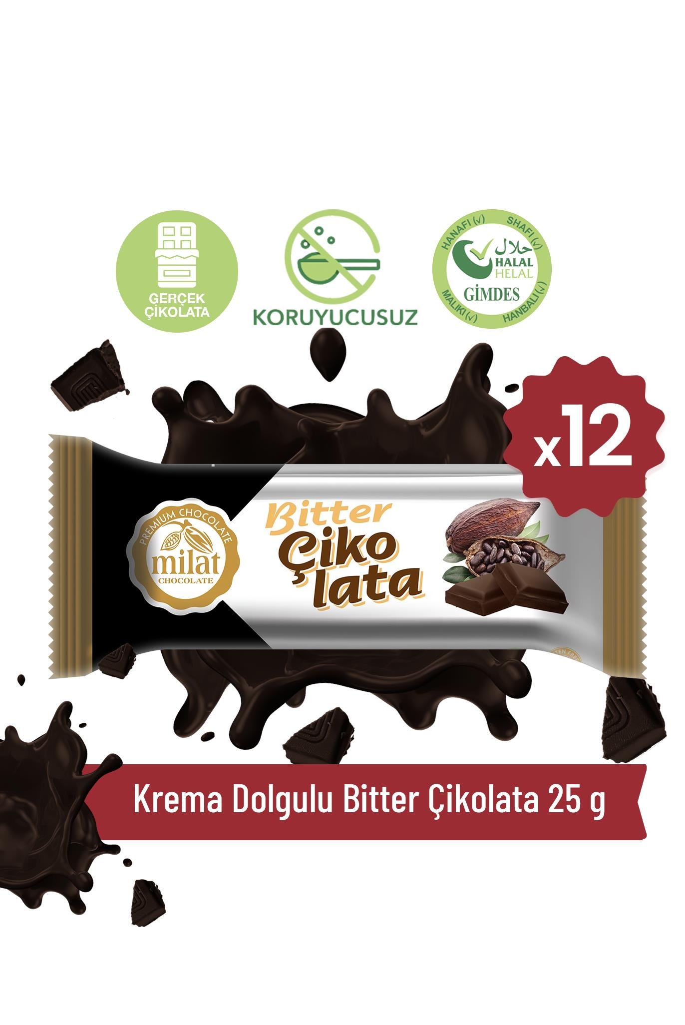 Krema Dolgulu Bitter Çikolata 25 g x 12 Adet (4297)